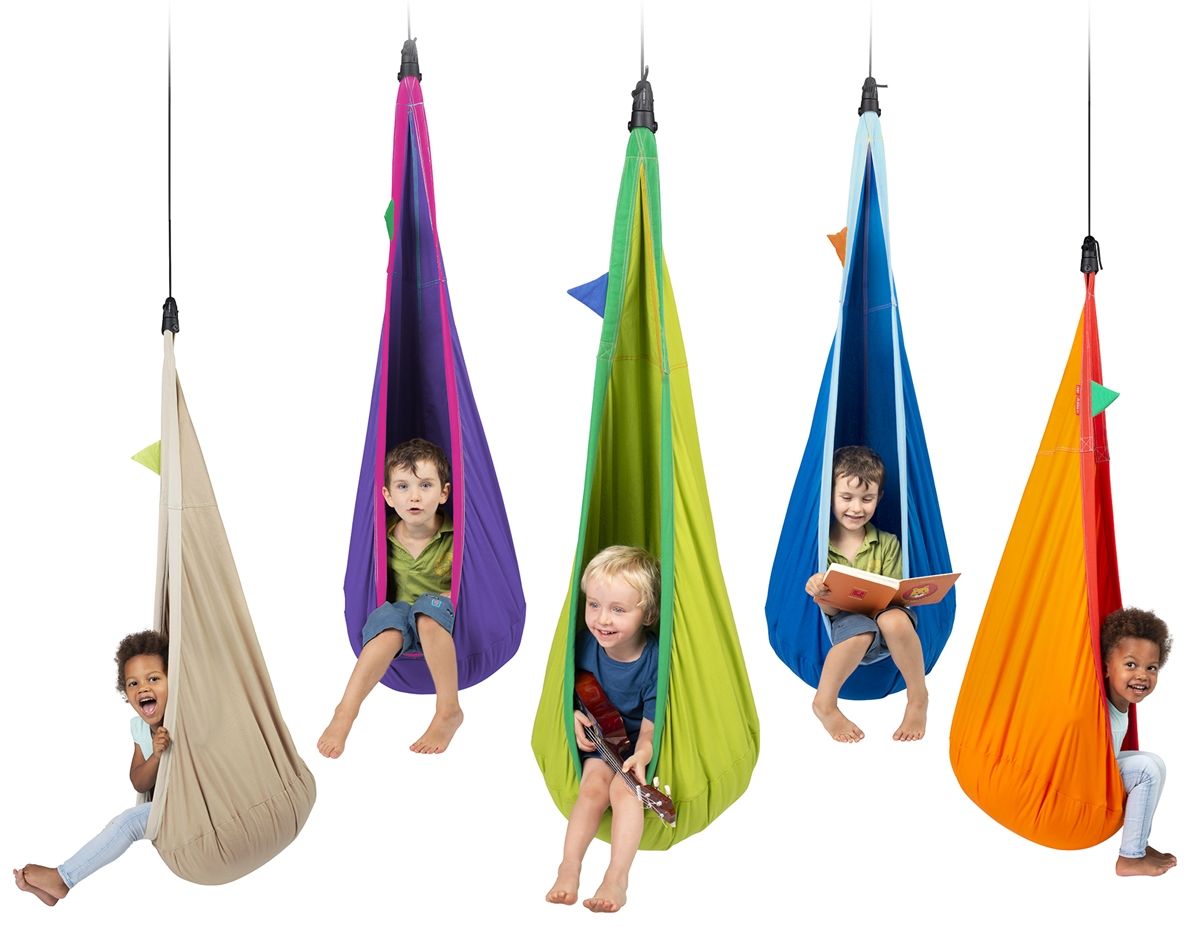 Like the cuddle swings, hanging pod swings can provide a sense of calming and anxiety relief for children. They also assist with balance and coordination, while allowing children to feel cozy and safe. Pod swings can also help with core strength and posture.